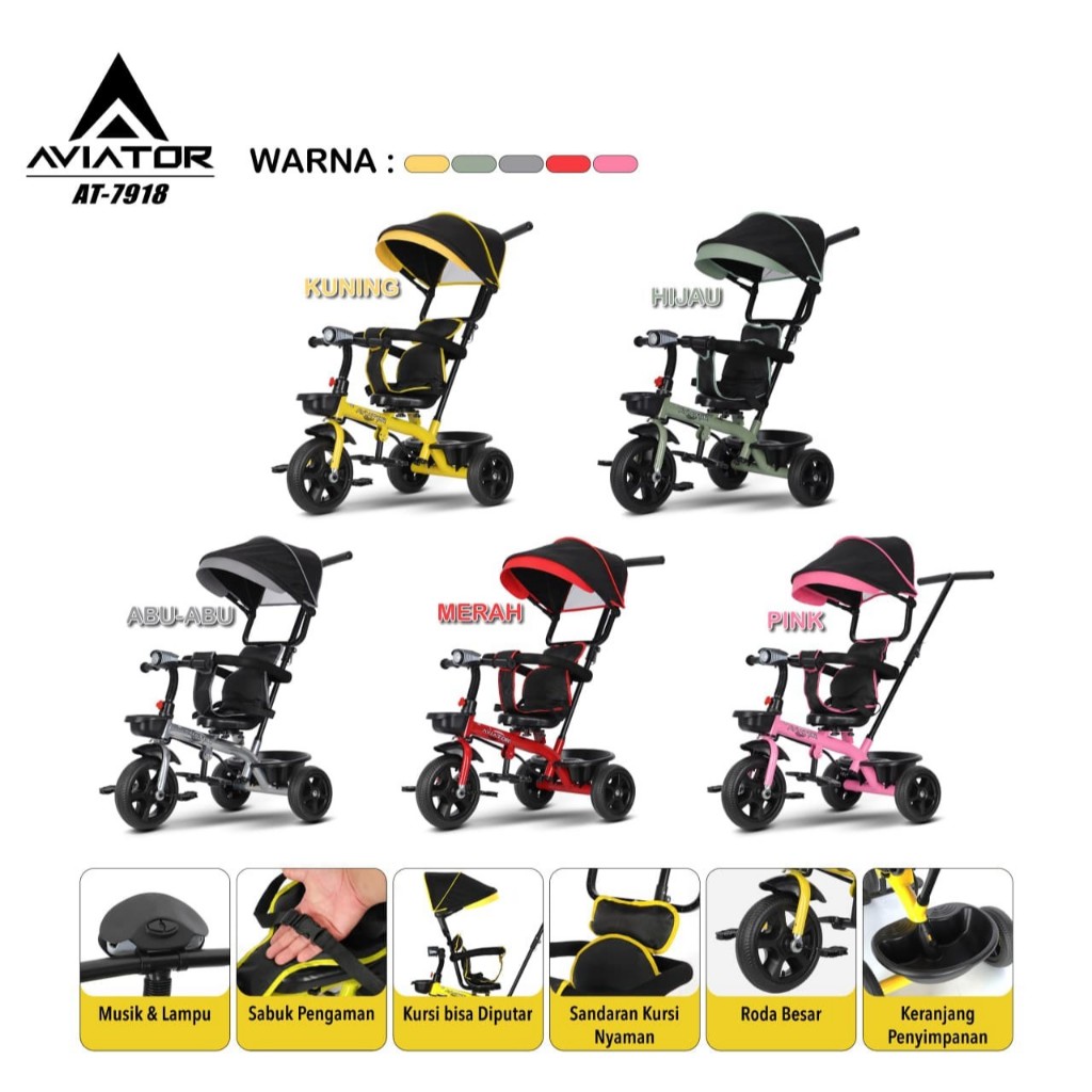 Sepeda Anak Roda 3 Tiga Tricycle Aviator At 7918 Ada Musik Kursi Putar At7918 At7711 At7713