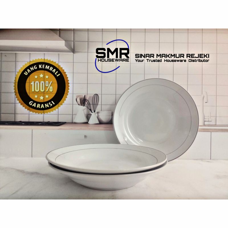 ( 6 Pcs ) Piring Makan Keramik Cekung List Sunbird Ukuran 9 Inch ( 6 Pcs )