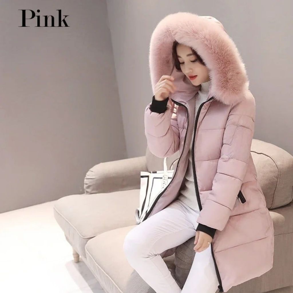 Luxury Jaket Winter Jubah Wanita Panjang/Long Coat, korea, Tebal Hodiee Bulu Musim Dingin