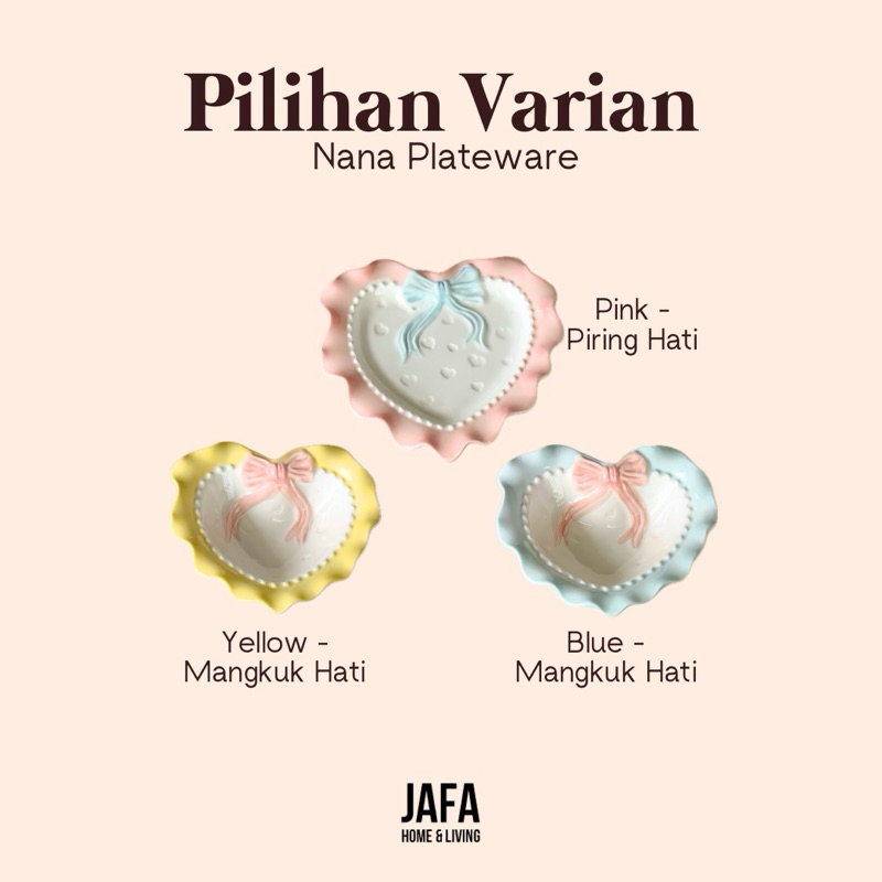 Blue - Bowl, Blue - Plate, Blue - Deep Plate, Pink - Bowl, Pink - Plate, Pink - Deep Plate, Blue - Mangkuk Hati, Blue - Piring Hati, Pink - Mangkuk Hati, Pink - Piring Hati