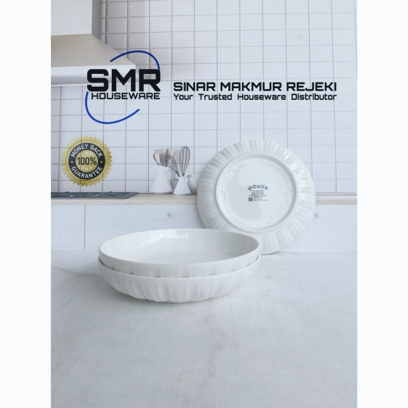 [ 3 Pcs ] Piring Keramik Putih Polos Porcelaine Model Labu Ukuran 7 Inchi | Piring Keramik Hokita Plate Pumpkin [ 3 Pcs