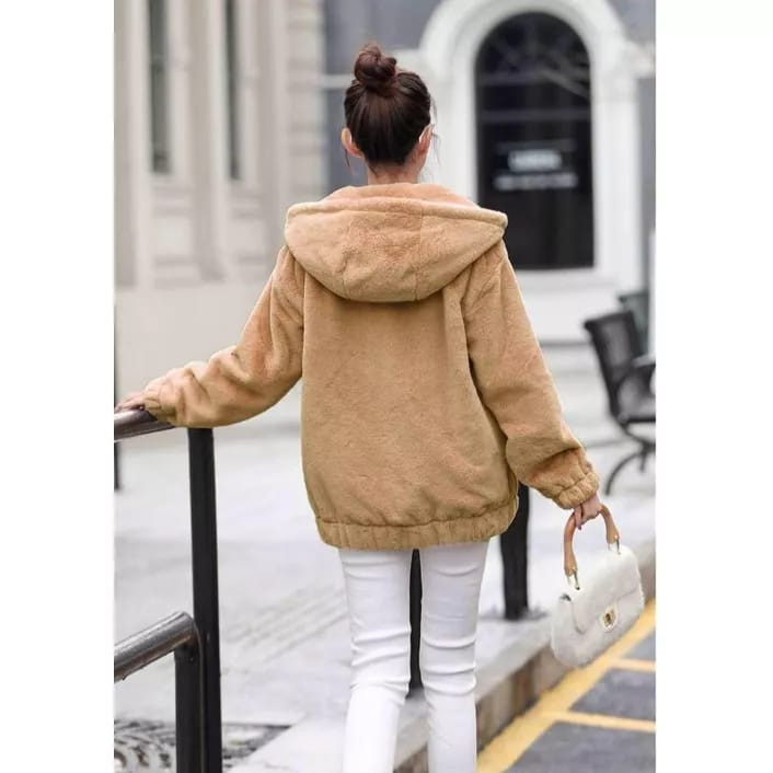 JAKET SHERPA BULU WANITA FLUFY HANGAT TEBAL OUR COLLOR KOREAN STYLE IMRT