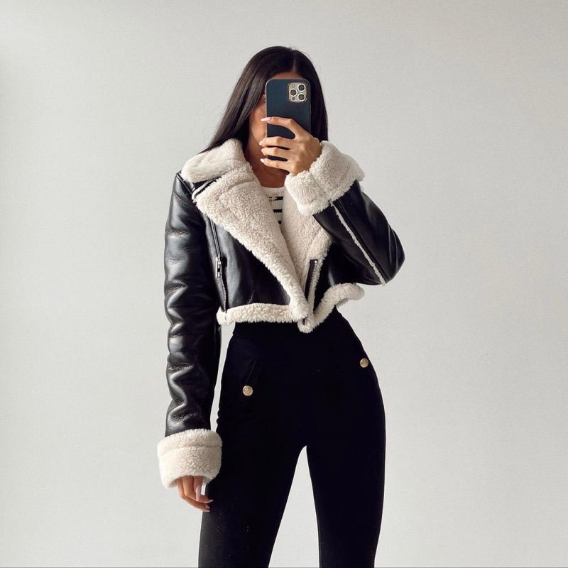 GRANDY - Ashley Leather Fur Crop Jacket / Jaket Kulit Bulu Winter Spring