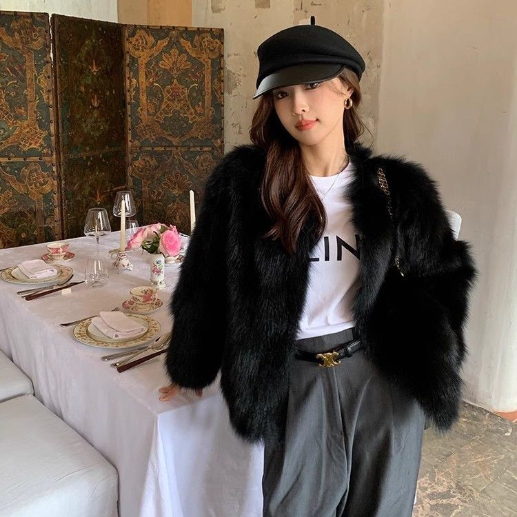 Mantel Bulu Rubah Imitasi Kecil Untuk Wanita Mantel Bulu Toka Ramah Lingkungan Bulu Anggun Gaya Pendek