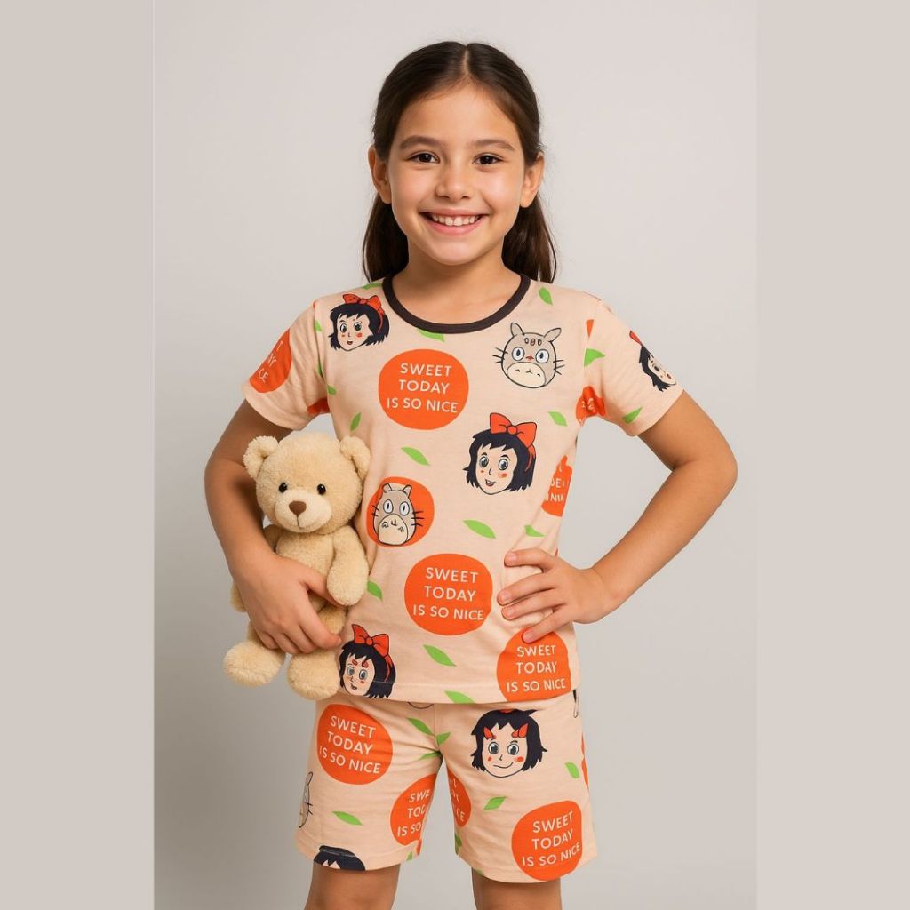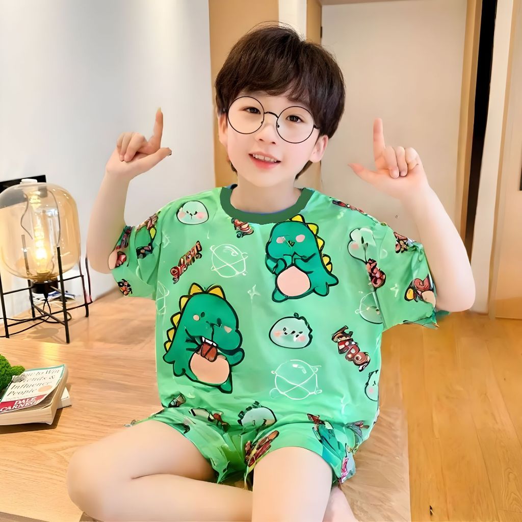 Setelan Baju Tidur Anak Bahan Kaos Harian Piyama Lengan Pendek Celana Pendek