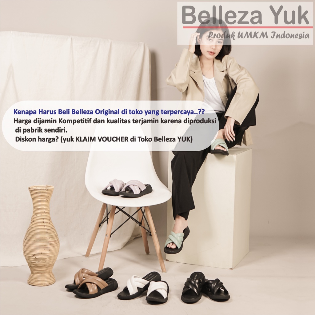 Belleza Yuk - Kanna Sandal Platform Wanita Size 26 - 41 Sendal Wedges Empuk Warna Hitam Black Model Silang Double Dua St
