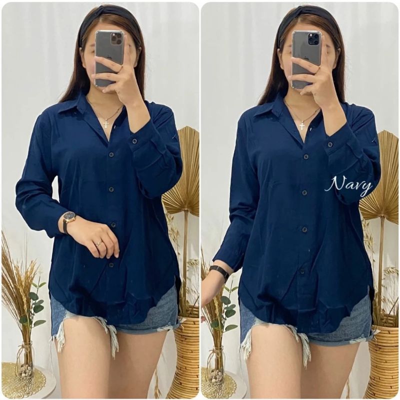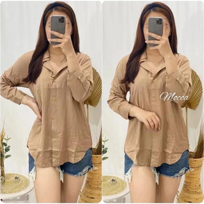 Kemeja Wanita Rayon twile/Atasan kemeja los Bahan adem/Atasan blous Ful kancing Leher kerah/Atasan Kemeja casual