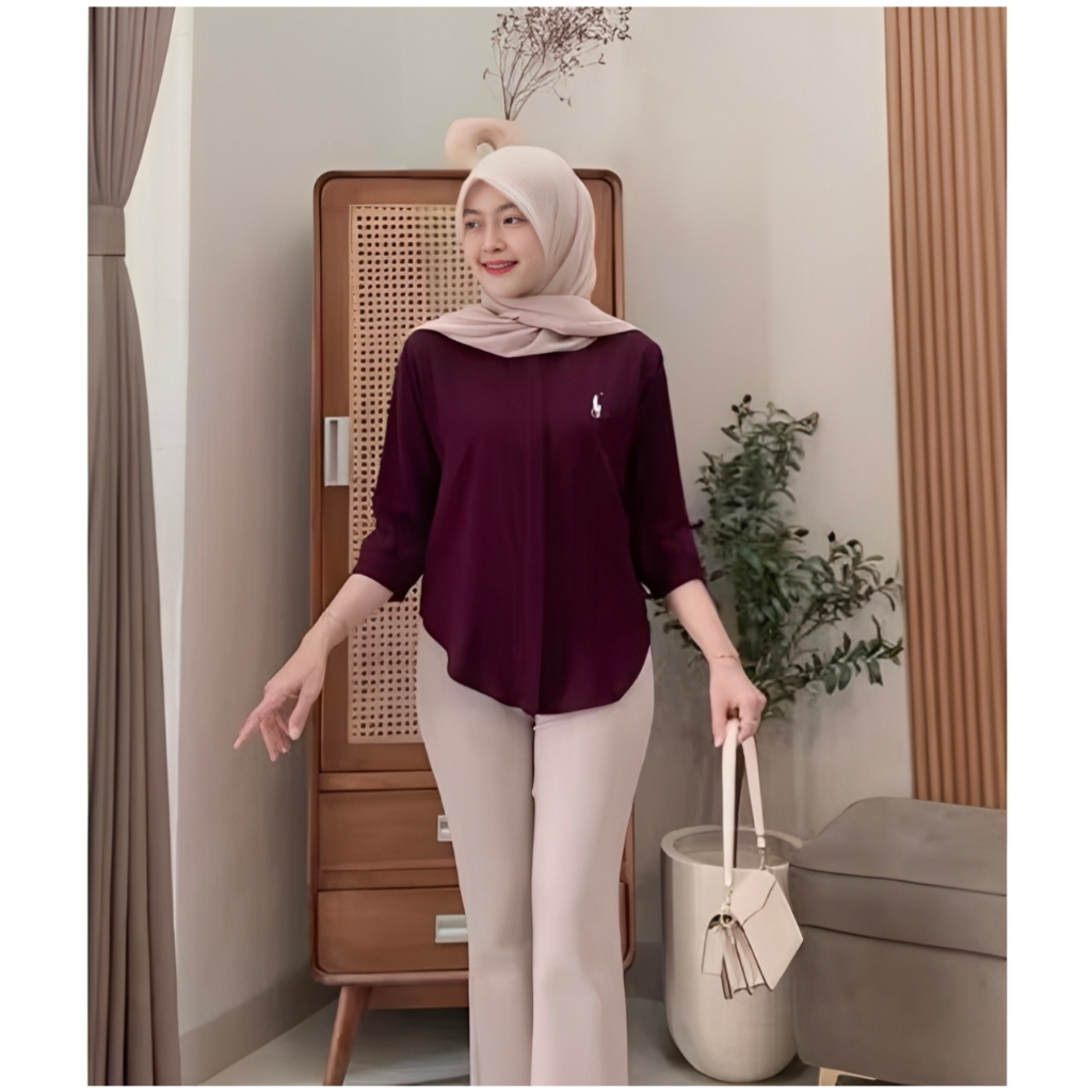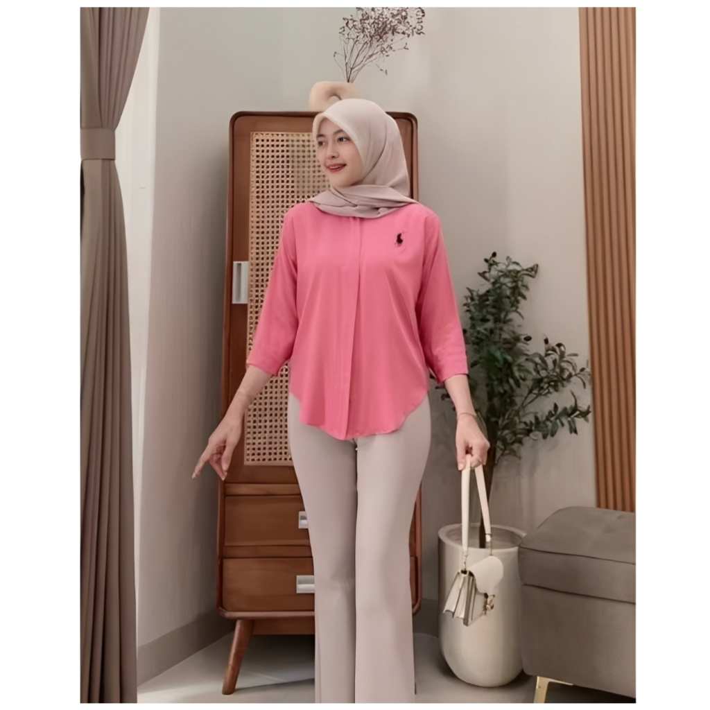 Kemeja Bordir Logo Atasan Wanita Lengan 7/8 Terbaru / Atasan Katun Baju Cewek Oversize Basic
