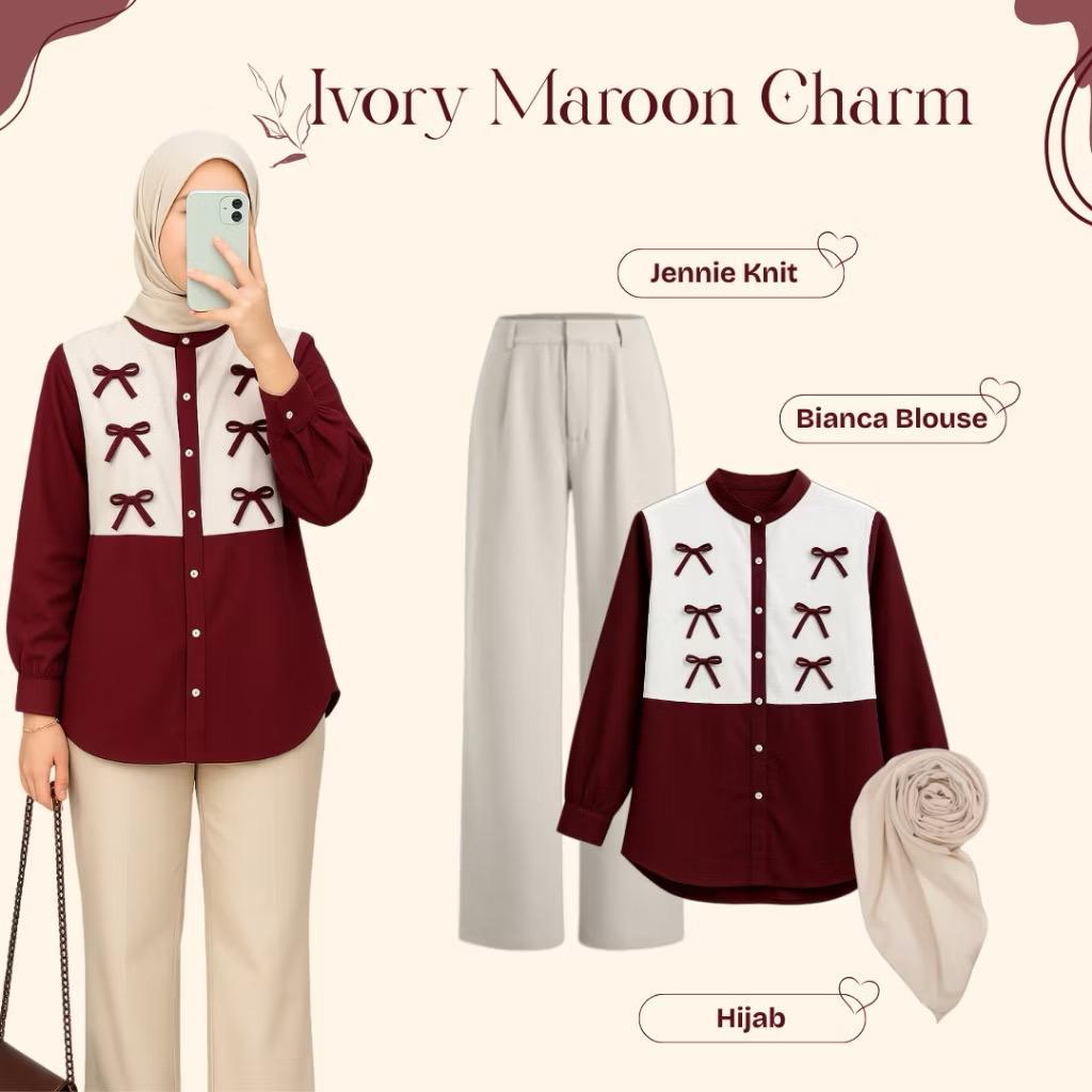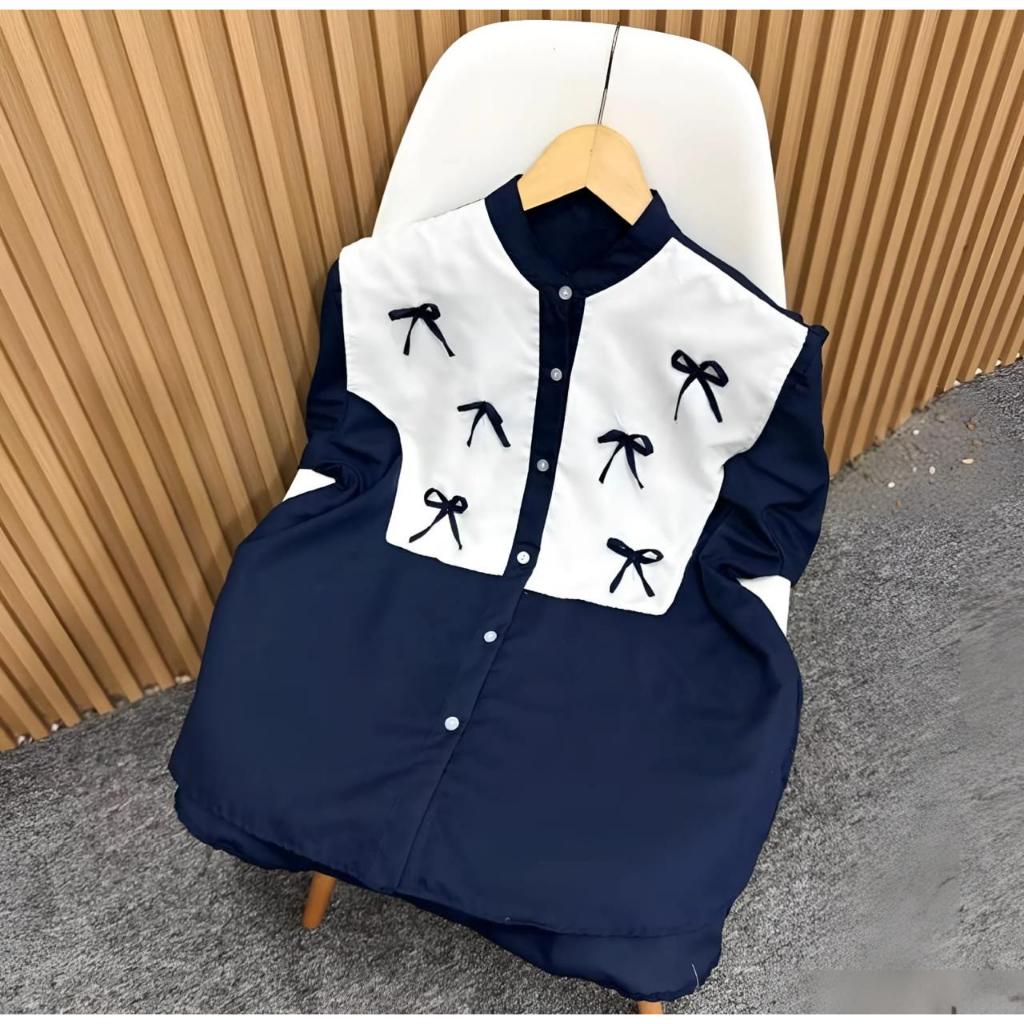 Kemeja Blouse Wanita Jumbo Pure Motif Bordir Pita Kekinian Kualitas Premium