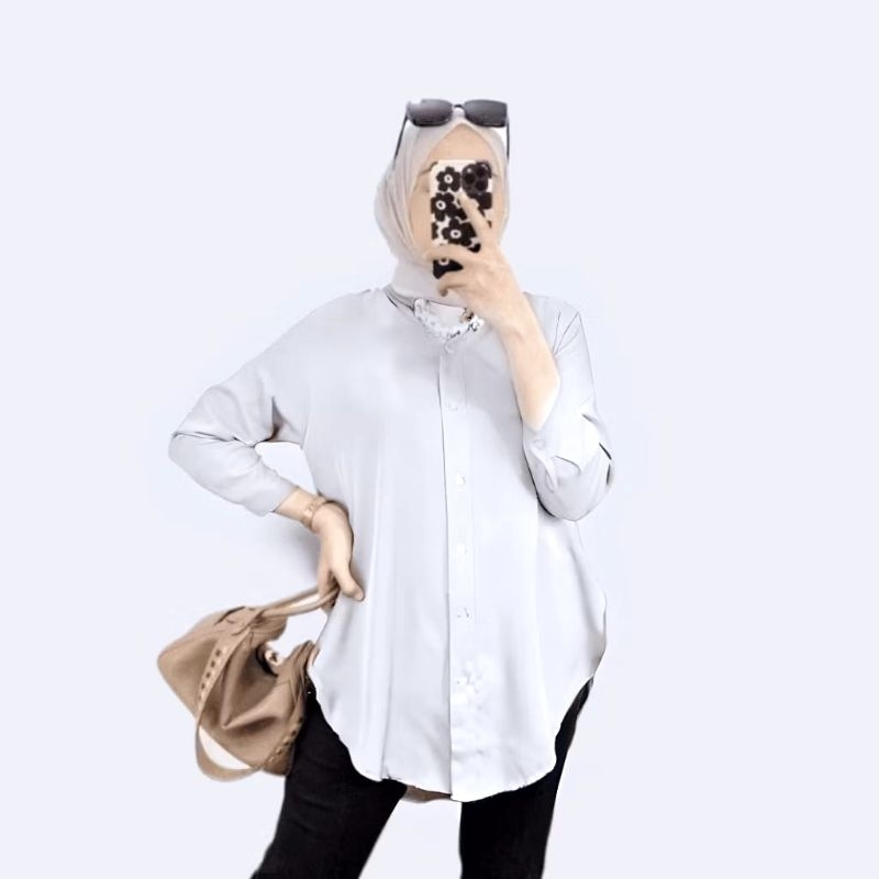 Kemeja Wanita Rayon Twill los T0P Blouse Basic Kemeja Wanita Lengan 7/8 Wanita Over Size