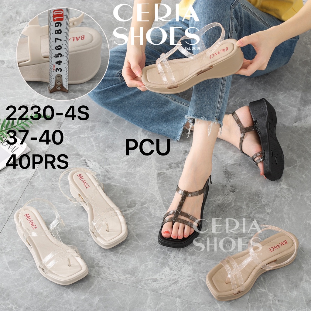 Sandal Jepit Wedges Wanita Import Tali Karet Motif Gliter Transparant Hak Tinggi 5 Cm Sol Anti Slip Balance 2230 -4S