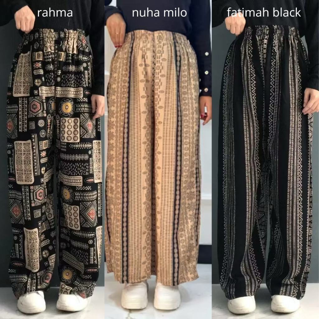 THREELOOK Official Paket Murah Isi 3 Pcs Celana Kulot Hommy Rayon Viscose Motif Terbaru Celana Kulot Highwaist Term