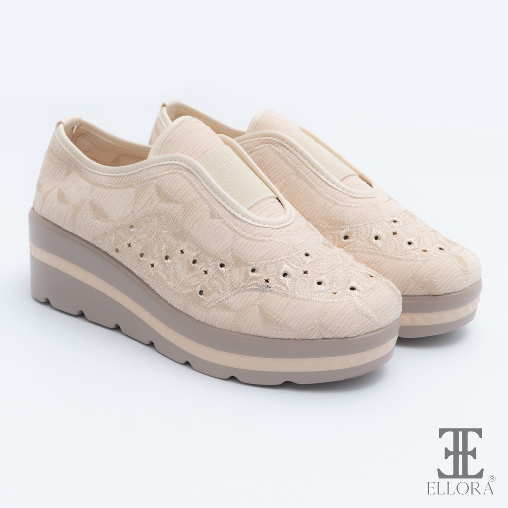 Ellora Eb-6758 Sepatu Wedges Wanita Bahan Bludru Import 5.5Cm