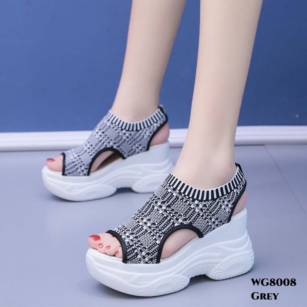 Prf Wedges Sandals Tinggi 9Cm Bahan Canvas Elastis Black White Grey Uk 36-40 Fashion Korea Wg8008