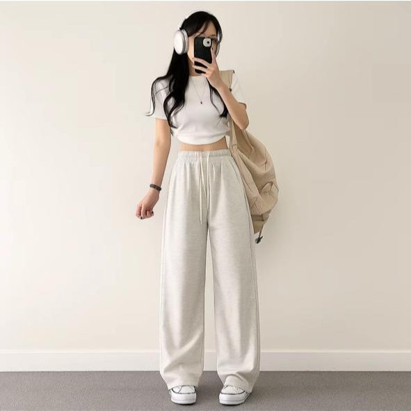 Celana Panjang Highwaist Loose Pants Kulot Panjang Pria Wanita Style Korea