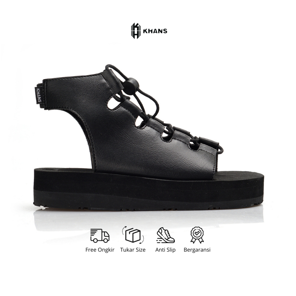 Khans - Sandal Platform Wedges Wanita - Yeji Black