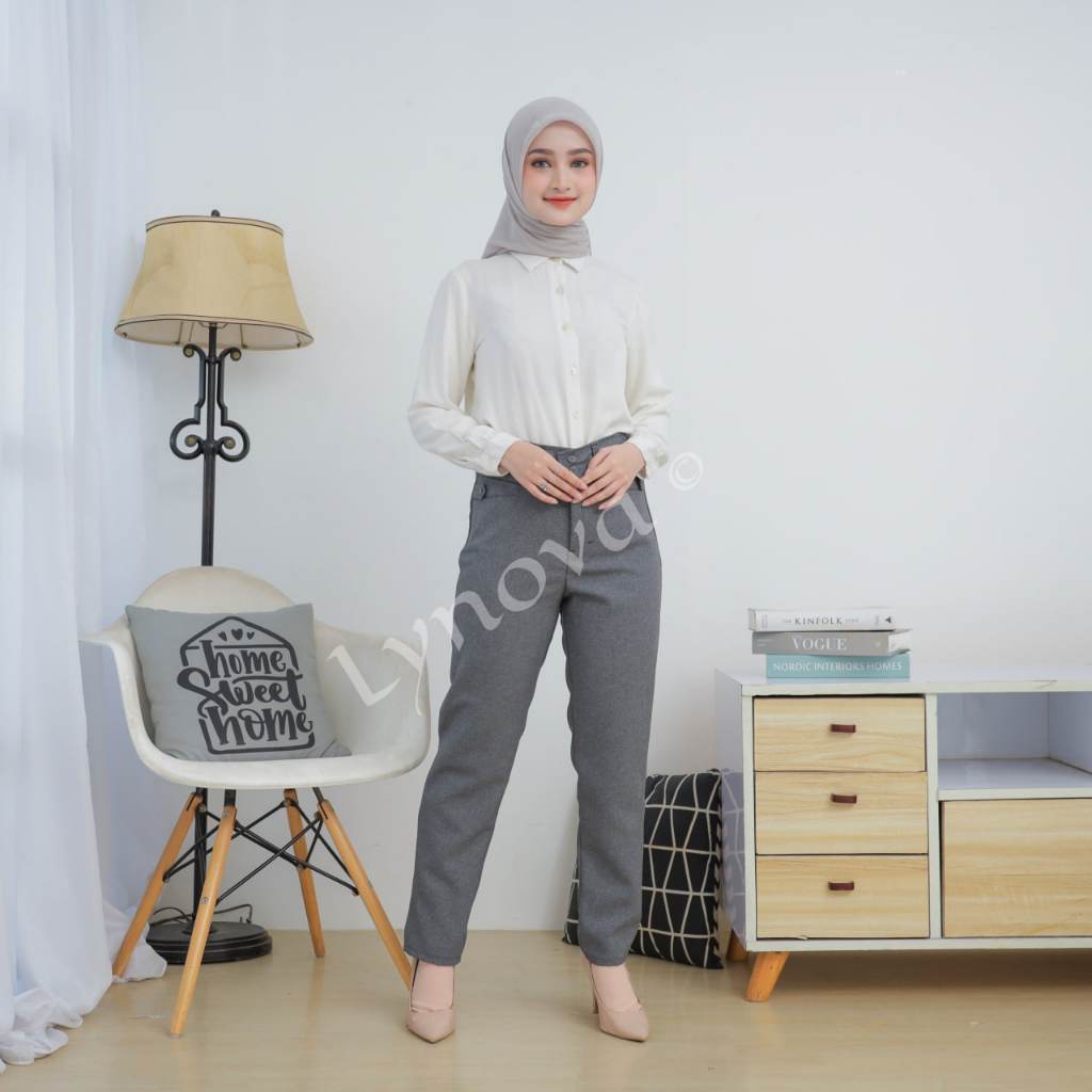 Celana Kerja Wanita Celana Bahan Wanita Kerja Jumbo Model Pinggang Reseleting dan Pinggang Karet Bahan Gracella