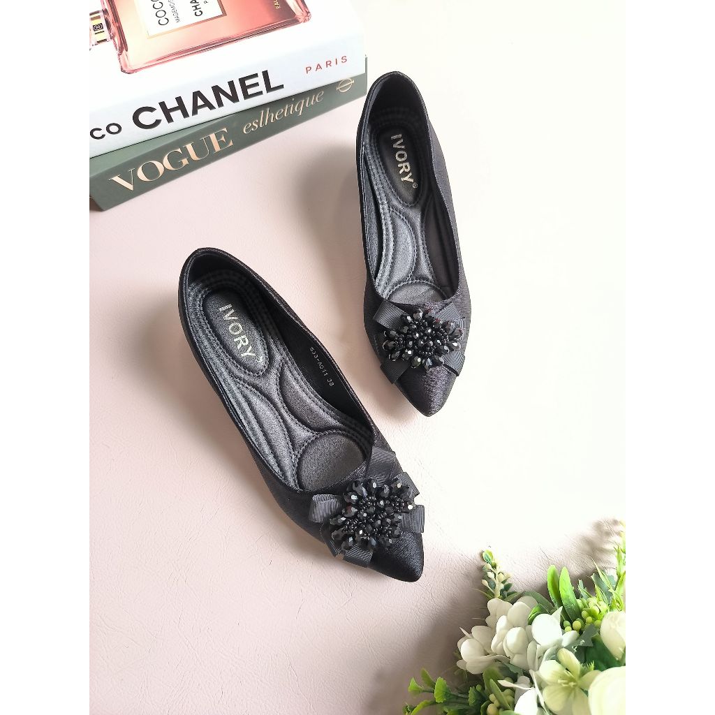 Ivory Sepatu Heels Wanita Kerja Hak Tahu Ag11 Hitam