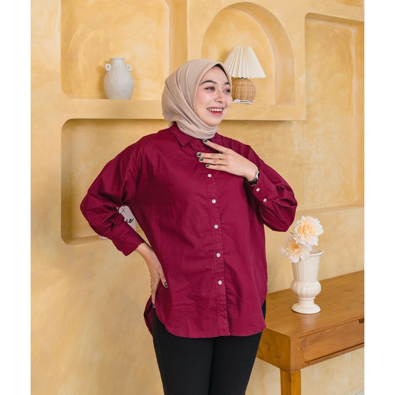 Kemeja los Wanita plin Zara Lengan Kancing Ukuran LD 120 cm Atasan Oversize Blouse Kerah Kerja