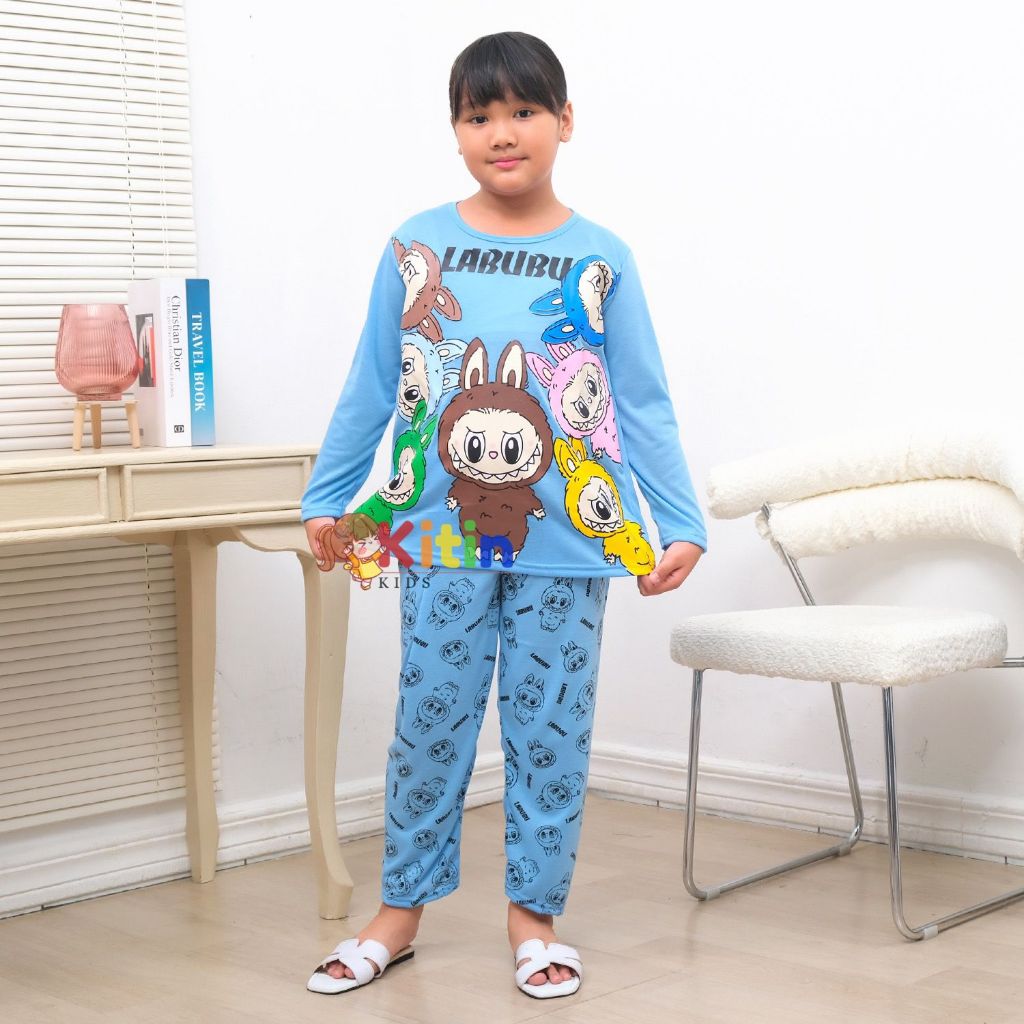 KITIN - SETELAN PIYAMA ANAK CEWEK/PEREMPUAN DAN BAJU TIDUR TANGGUNG JUMBO 4-12 TAHUN MOTIF LABUBU LOTSO KUROMI MIXU