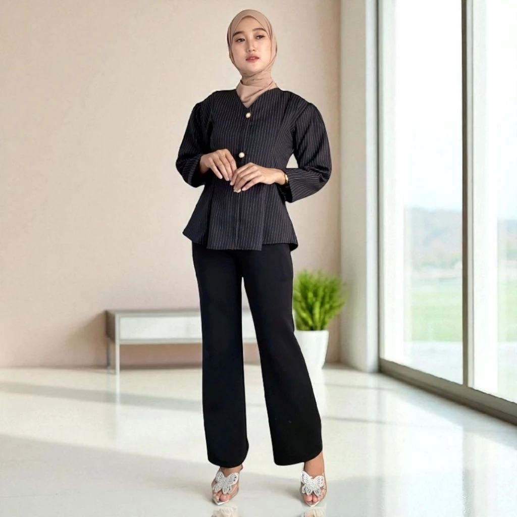 Kemeja Semi Woll Wanita Terbaru 2025 Korean Style Kekinian Tangan Panjang