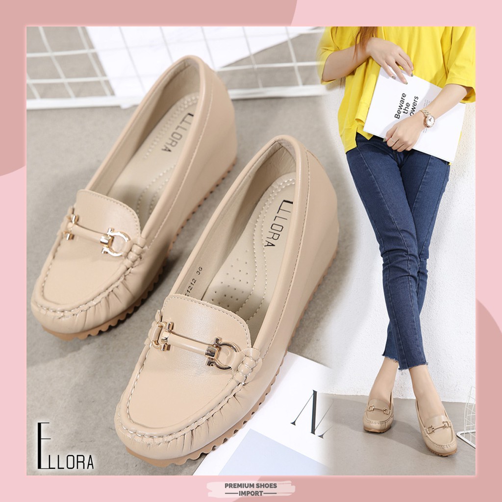 Ellora E1212 Sepatu Wedges Wanita Import Kulit Sintetis 5Cm