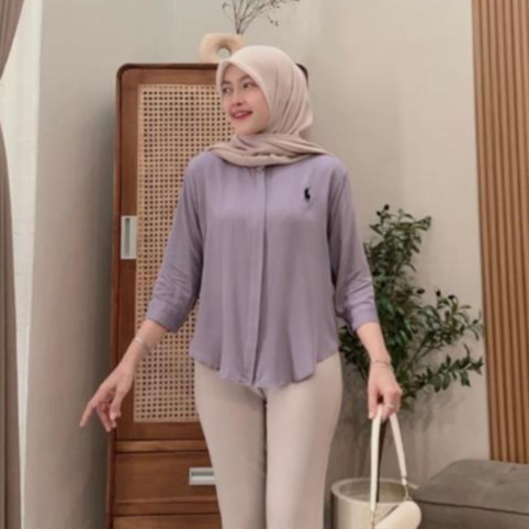 Kemeja Bordir Logo Atasan Wanita Rayon Twill Lengan 7/8 Terbaru Kemeja Wanita Oversize