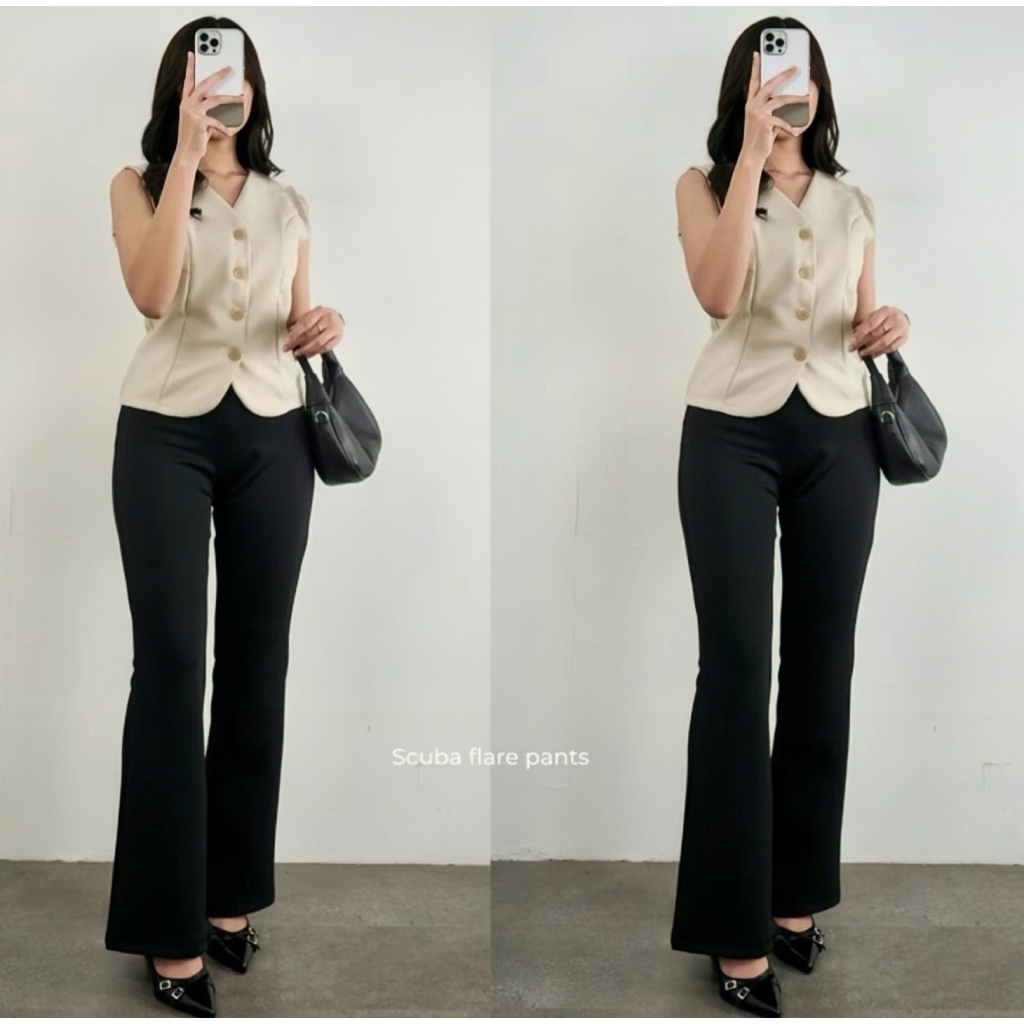 Flare Pants - Highwaist Flare Pants - Celana Kulot Semi Cutbray Wanita Jumbo Scuba Pinggang Highwaist Bahan Strecy