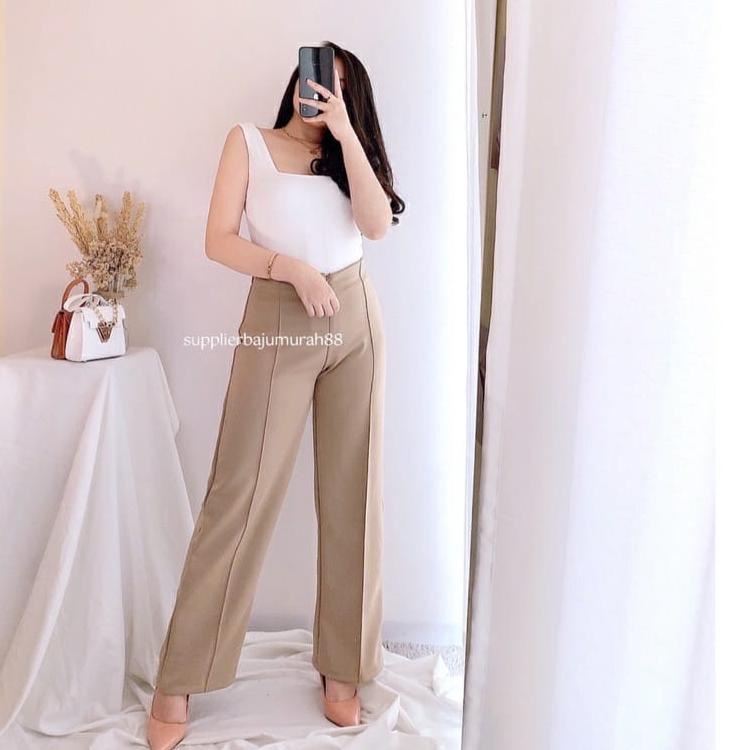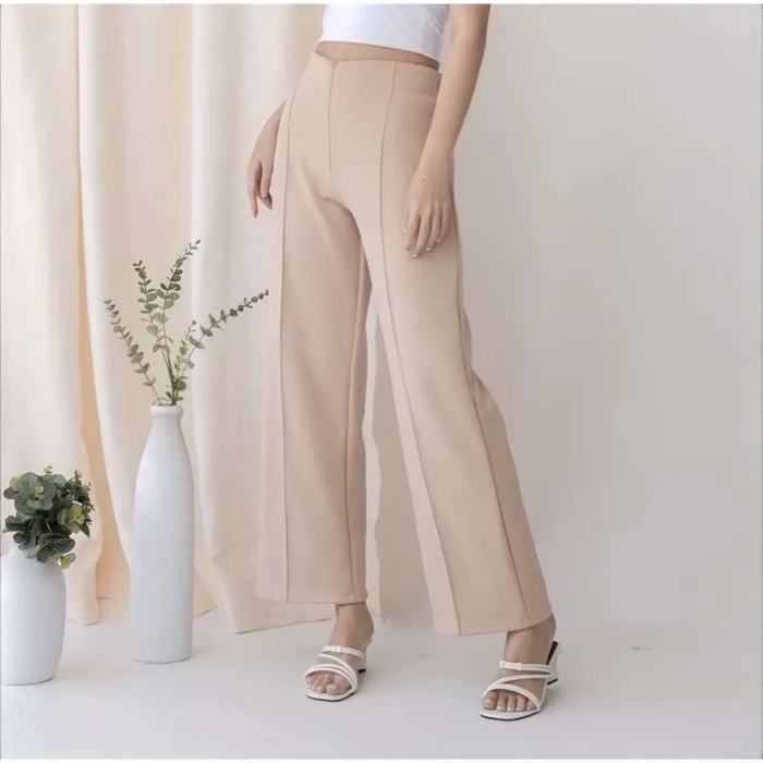 Celana Wanita Kulot Garis Basic HW Irene Cullotes Scuba Wide Leg Kulot Premium