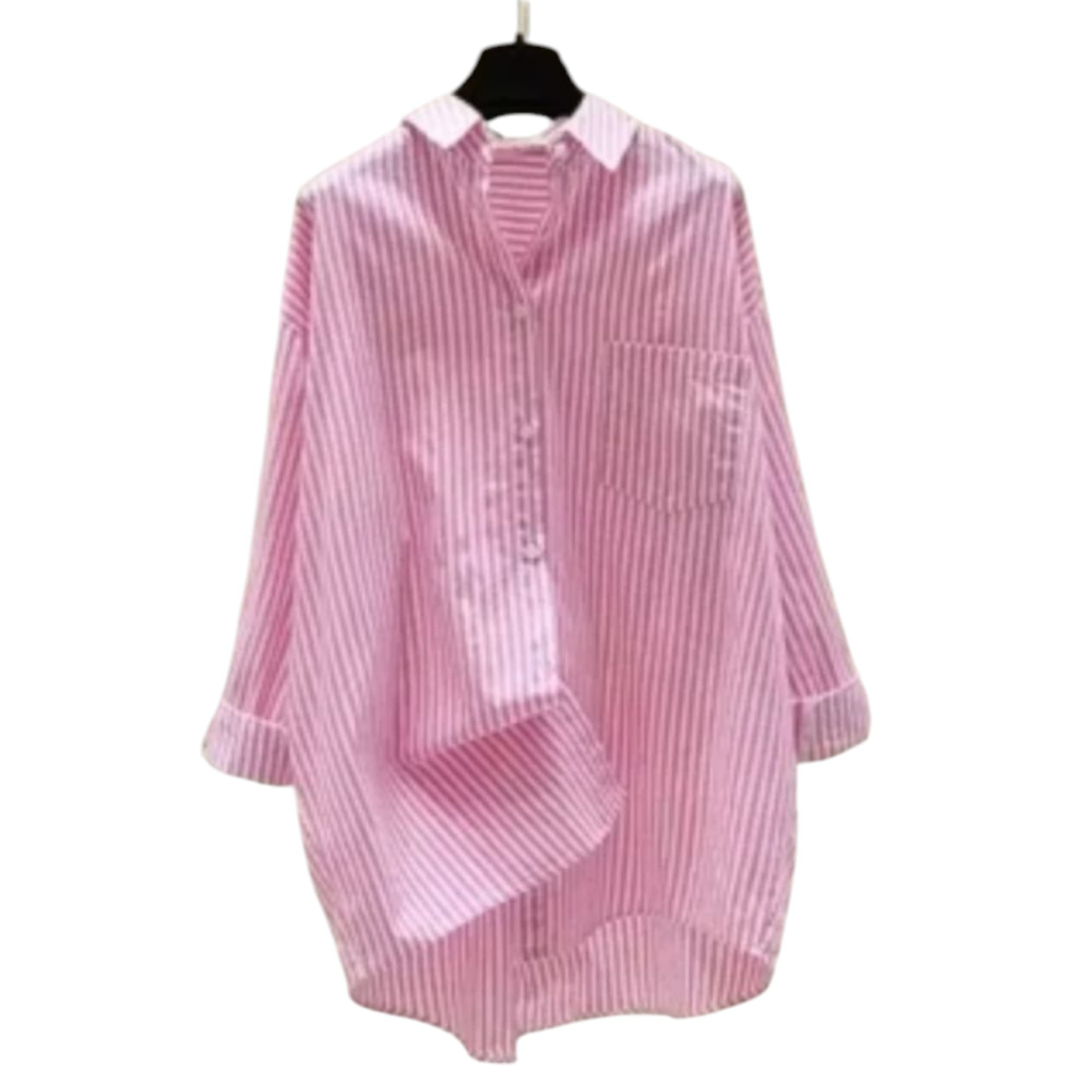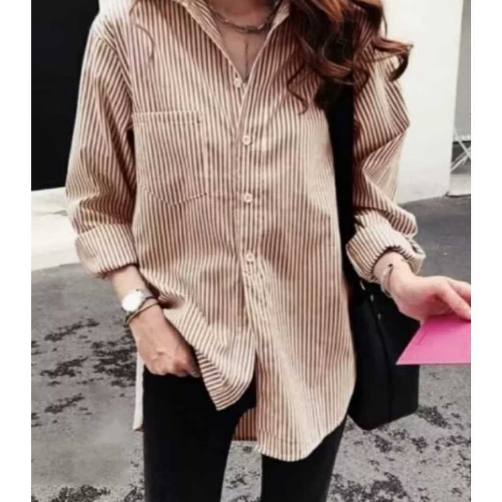 Kemeja Salur Brisa Wanita Katun S-4XL
