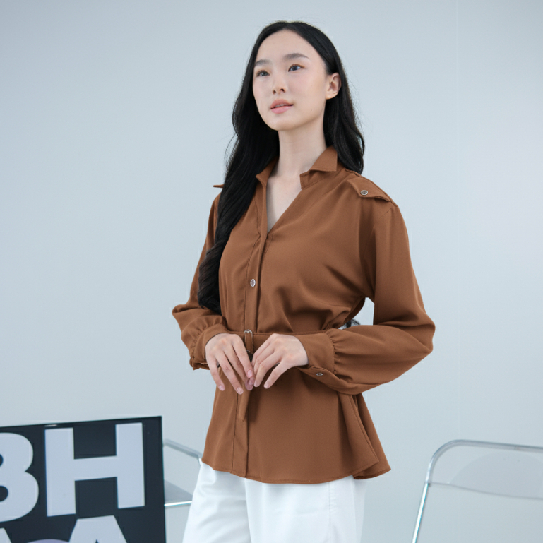 REVA Kemeja Wanita Lengan Panjang Model Korean Style Kekinian Modis Nyaman Ukuran M L XL XXL