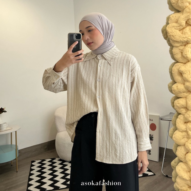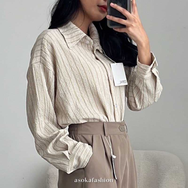 ASOKA Diara Shirt 2066 - Kemeja Salur - Kemeja Oversize - Atasan Wanita