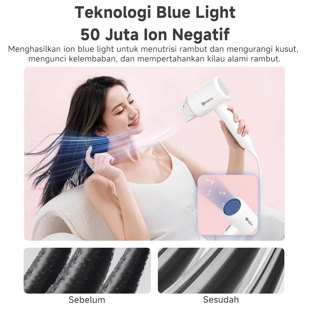 Simplus Pink Hair Dryer Foldable Dapat & Ion Negatif & Strong Wind & Low Watt