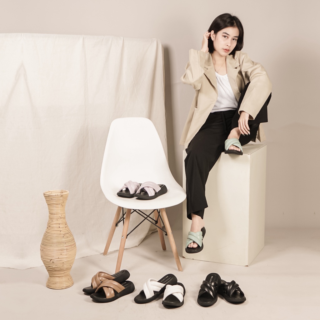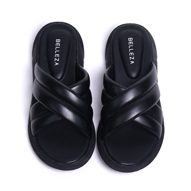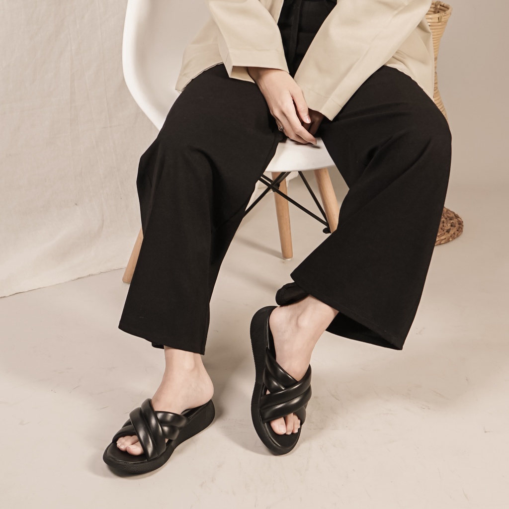 Belleza Mall - Platform Sandals Kanna Black | Sendal Selop Pergi Wanita Hak Sedang 3Cm - 4Cm Warna Hitam | Sandal Rumah