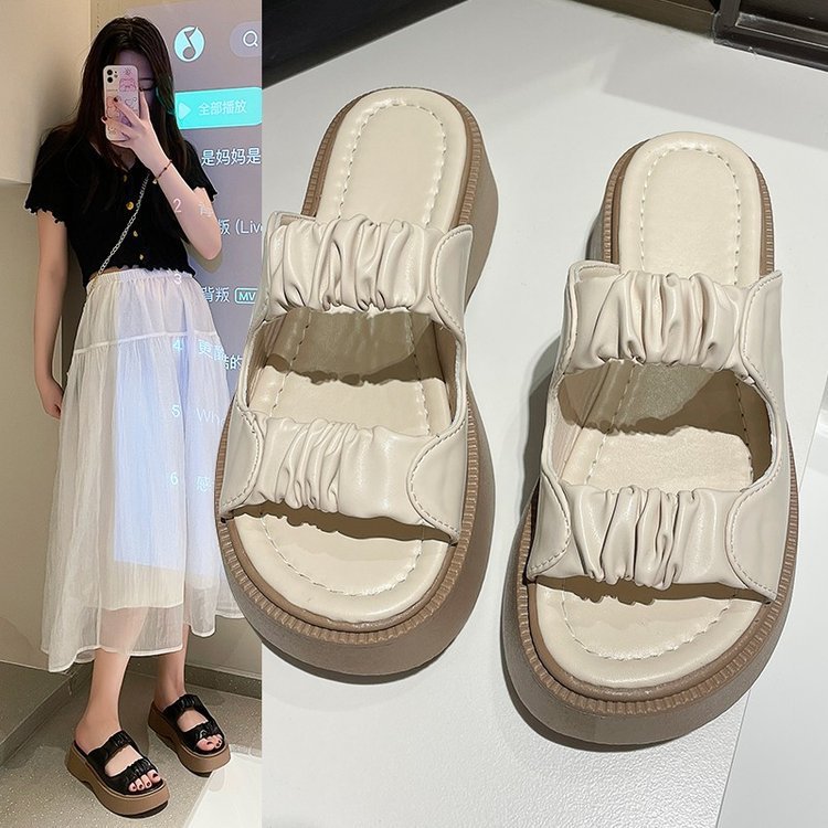 Sandal Wedgse Wanita Ruched Strap Model Casual Korea Premium