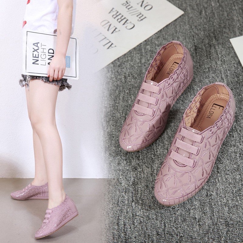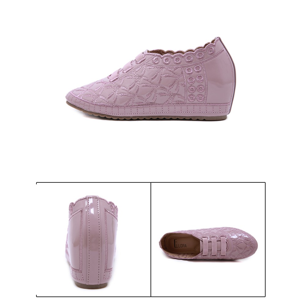 Ellora A622-22 Sepatu Wanita Wedges Import Bahan Kulit Glossy Full Bordir 6Cm