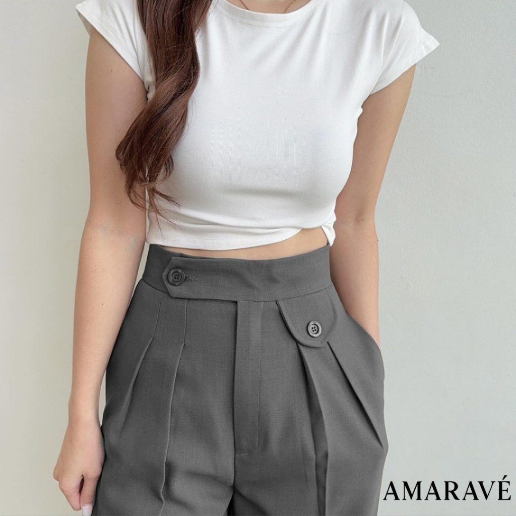 AMARAVE - Celana Panjang Wanita Highwaist Celana Bahan Wanita Kerja Kulot Wanita Kantor Bahan Woll