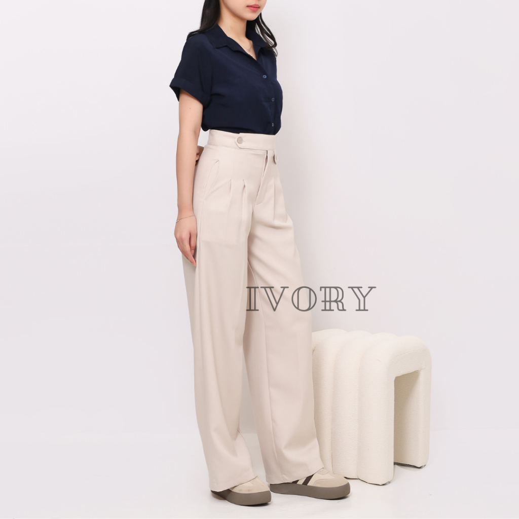 IVORY - Celana Kulot Wanita Panjang Kerja Formal Kantor Kekinian CeLana Wanita Loose Pants Higwaist Kekinian Boyfri
