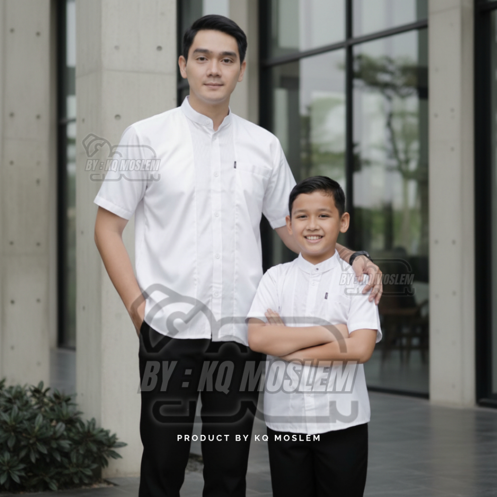 Baju Koko Couple Ayah Anak Laki Laki Warna Mahogany Lengan Pendek Motif Embosh Bahan Katun koko Terbaru 2026