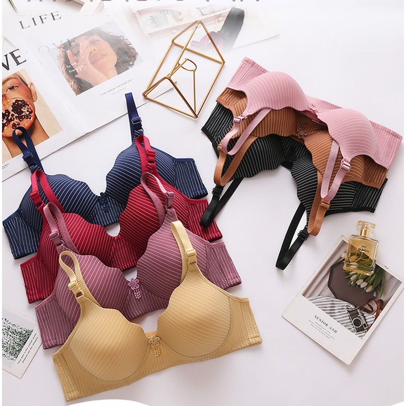 FeKECILn Bra S3K51 Japan Motif Garis Salur Gelombang BH Lembut 3/4 Beha Tanpa Kawat