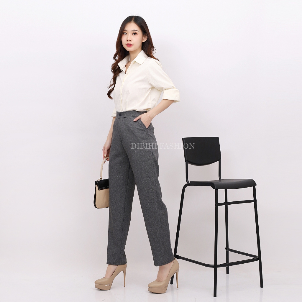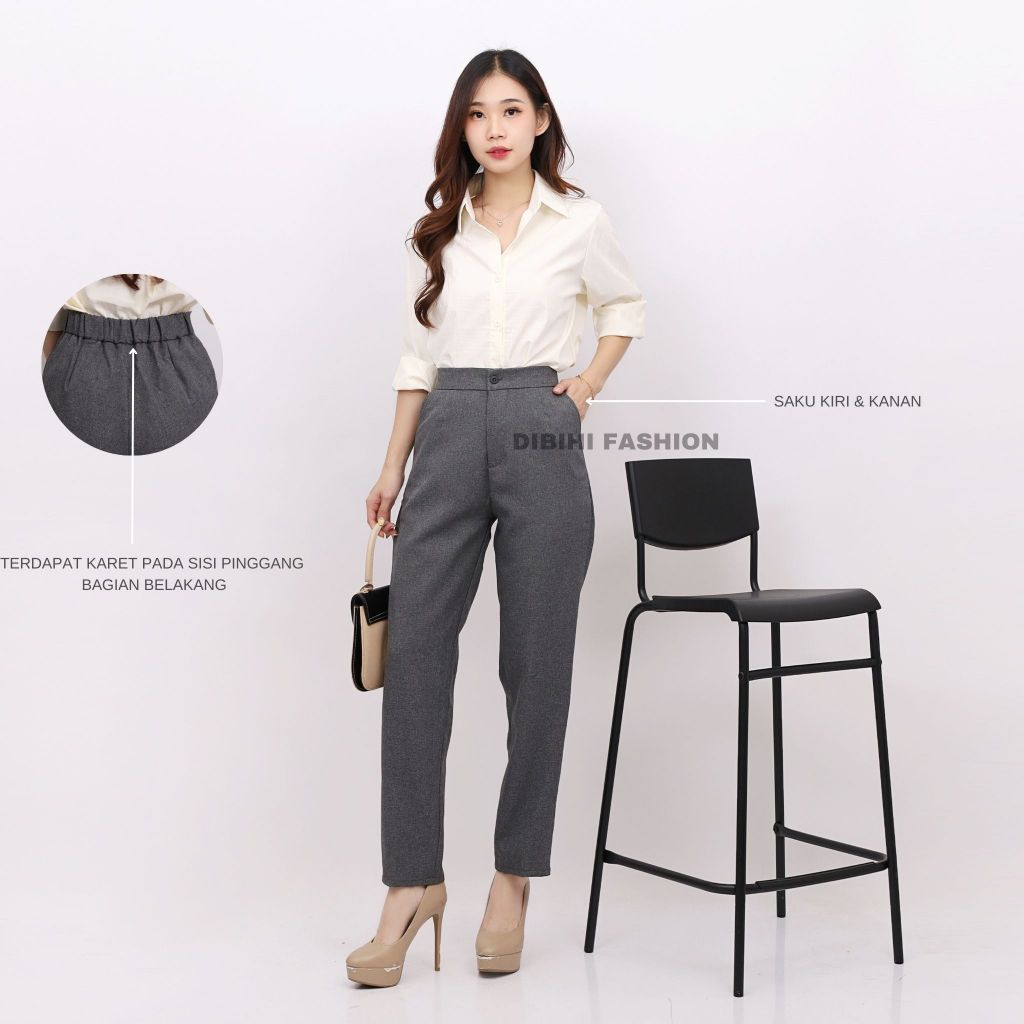 Dibihi - Celana Panjang Kerja Formal Wanita Pinggang Karet Sisi Belakang Bahan Stretch Imrt