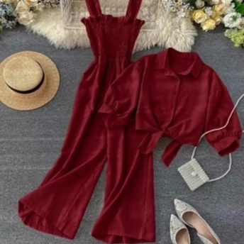 Jumpsuit Korea Style / Oneset Ceril Jumpsuit/ Setelan Wanita Terbaru/ Setelan Bahan Cringkle Airflow/Moscrepe Jumps