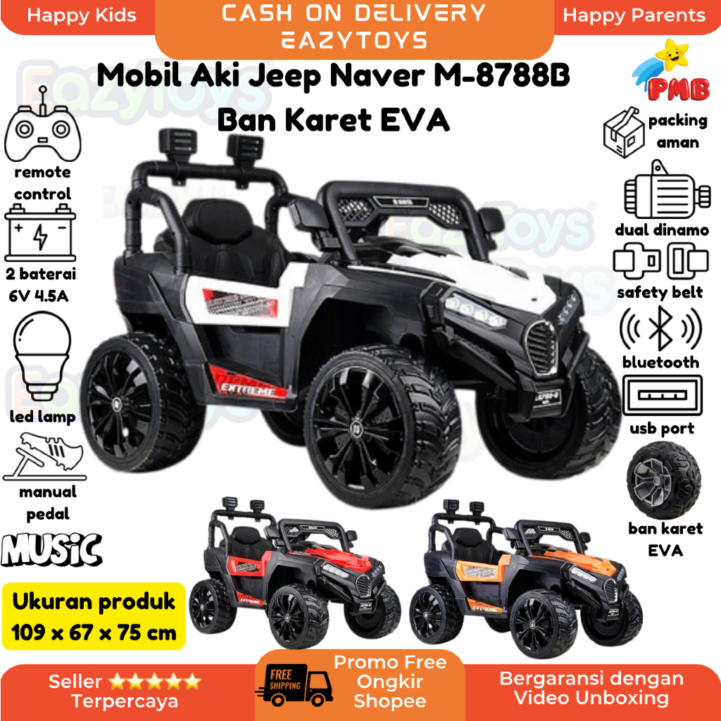 Mainan Mobil Aki Anak Jip Naver PMB M8788B Ban Karet EVA 2 Gearbox