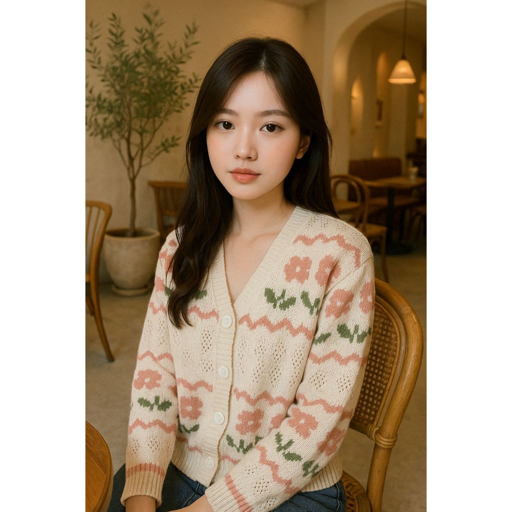 KARDIGAN RAJUT WANITA MOTIF BUNGA - YURA FLOWER Y KNITE - OUTHER KOREAN STYLE