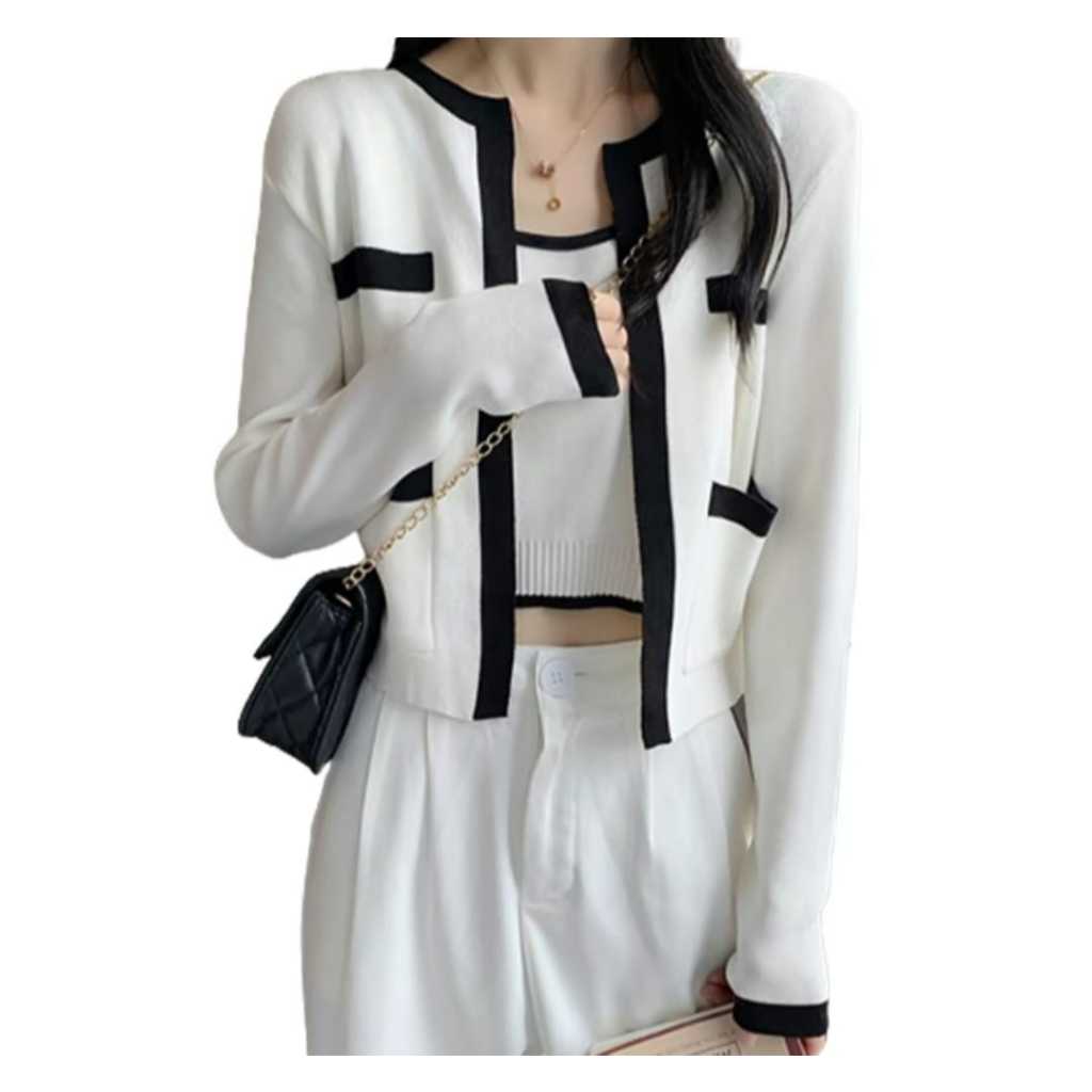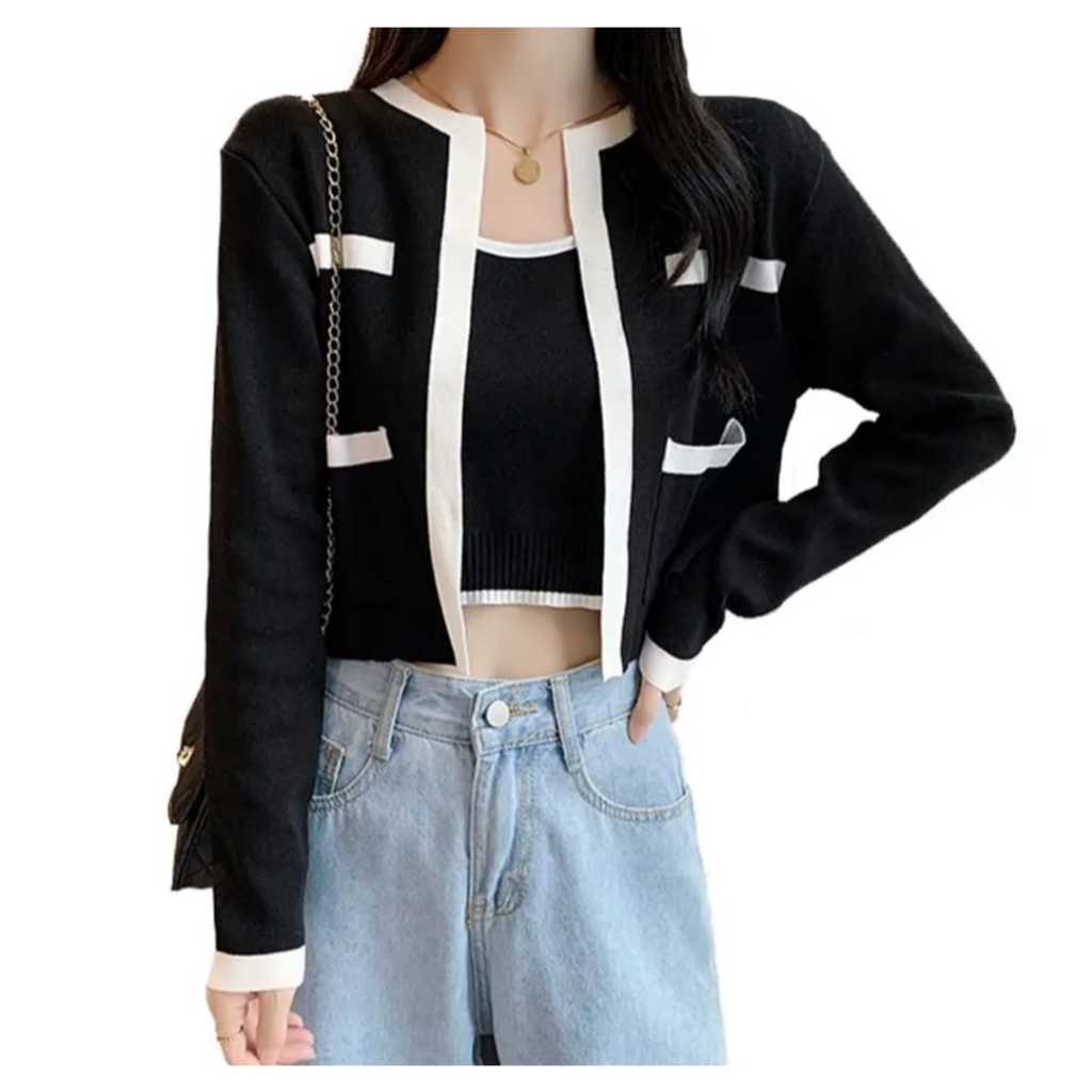 Atasan TankT0P igan Set Lengan Panjang Kekinian Rajut Premium | Baju Atasan Wanita TankT0P igan Lengan Panjang Raju