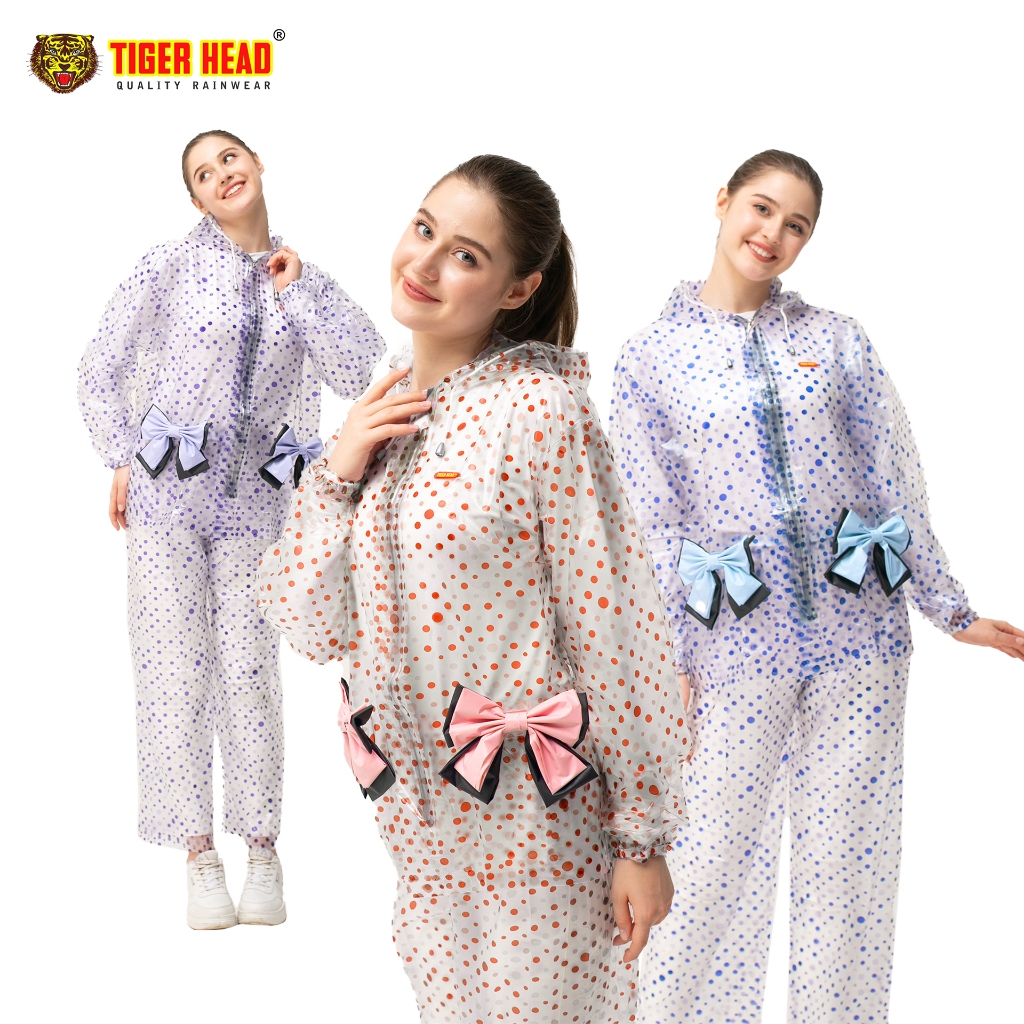 RAIN CITY Jas Hujan Setelan Wanita Lucu Pita Boba PVC Anti Rembes