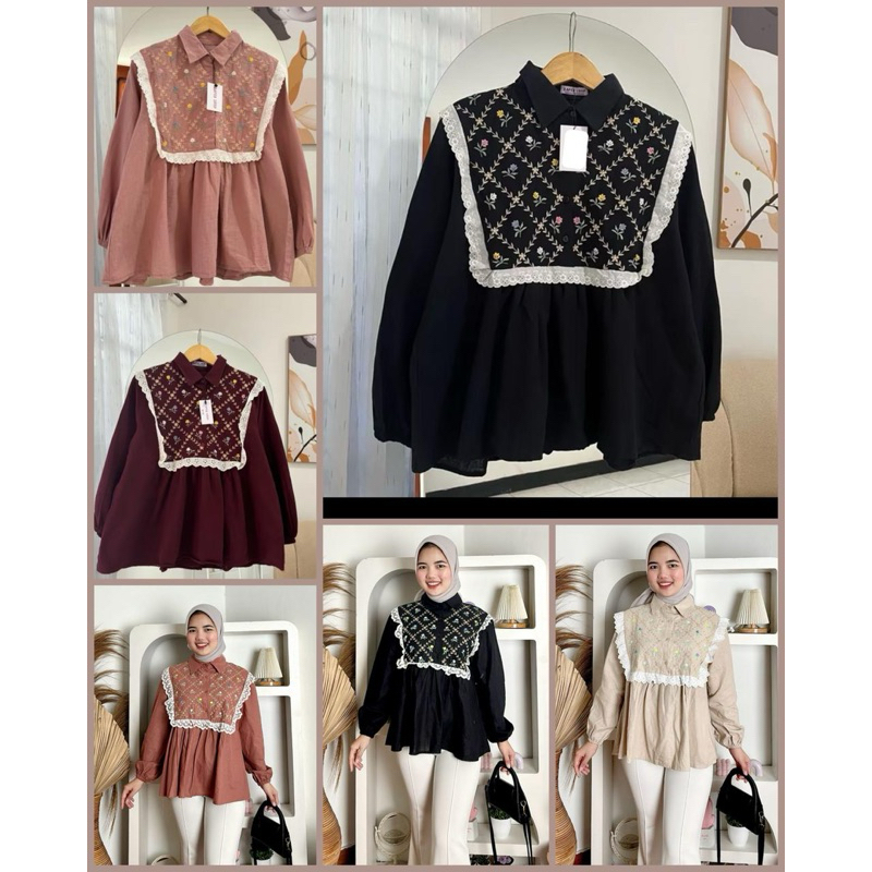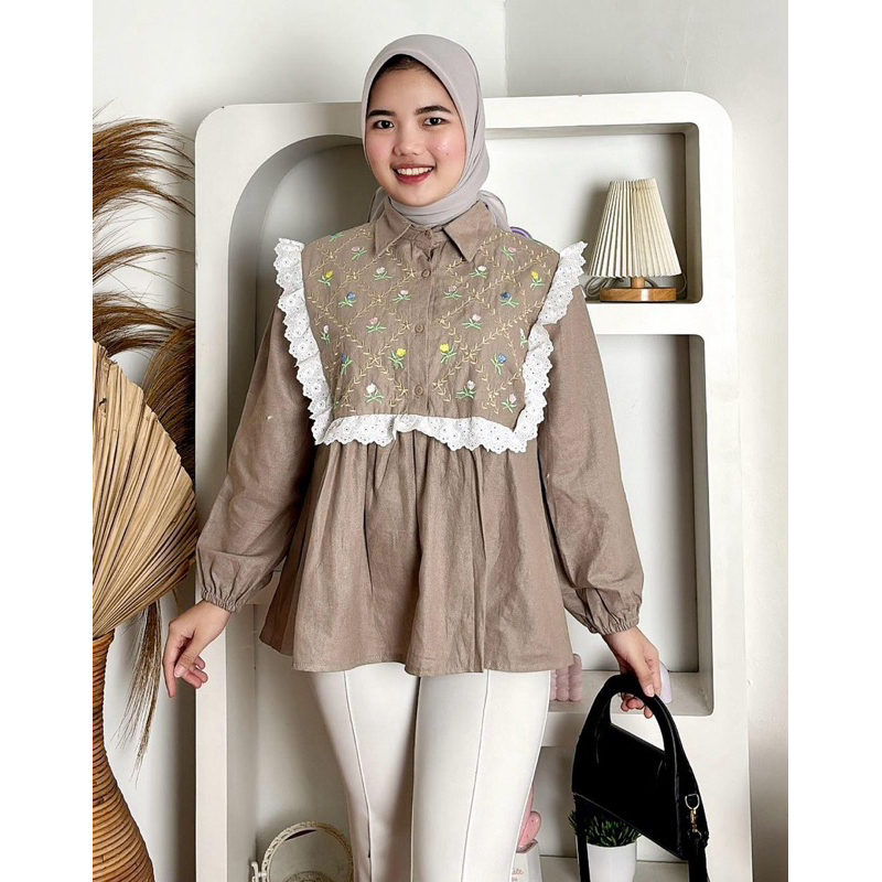 GIRLFASHIONSTORY ORIGINAL GHENIA LINEN EMBROIDERY KEMEJA BORDIR