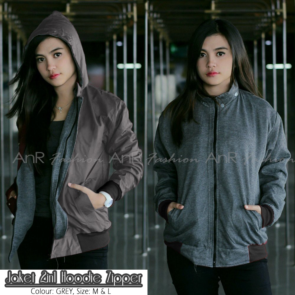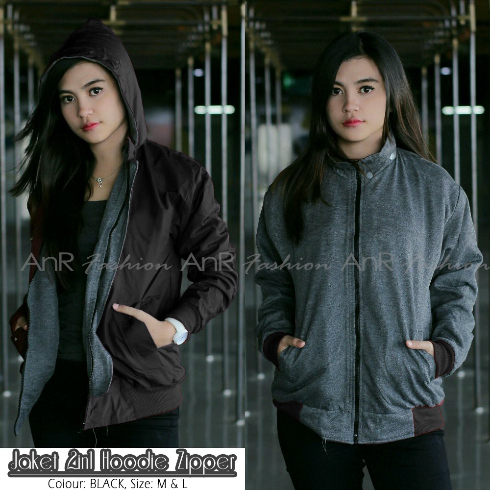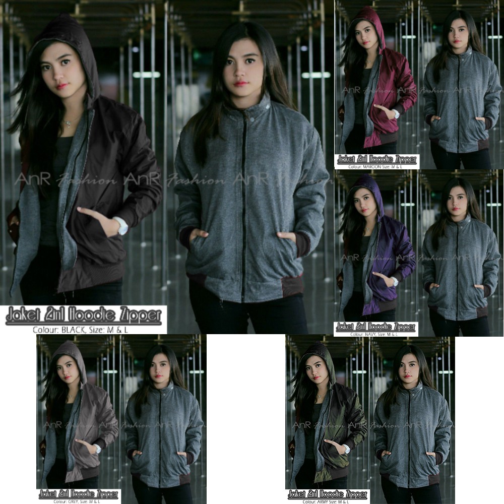 Jaket Bolak Balik 2in1 Bomber Parasut Fleece Hoodie Wanita Murah Kualita- Hitam/Navy/Maroon/Army/Abu