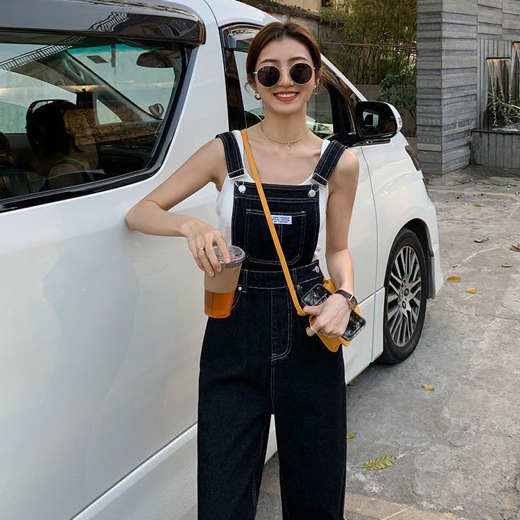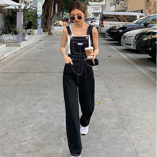 Jumpsuit Jeans Wanita Warna Hitam Yang Longgar