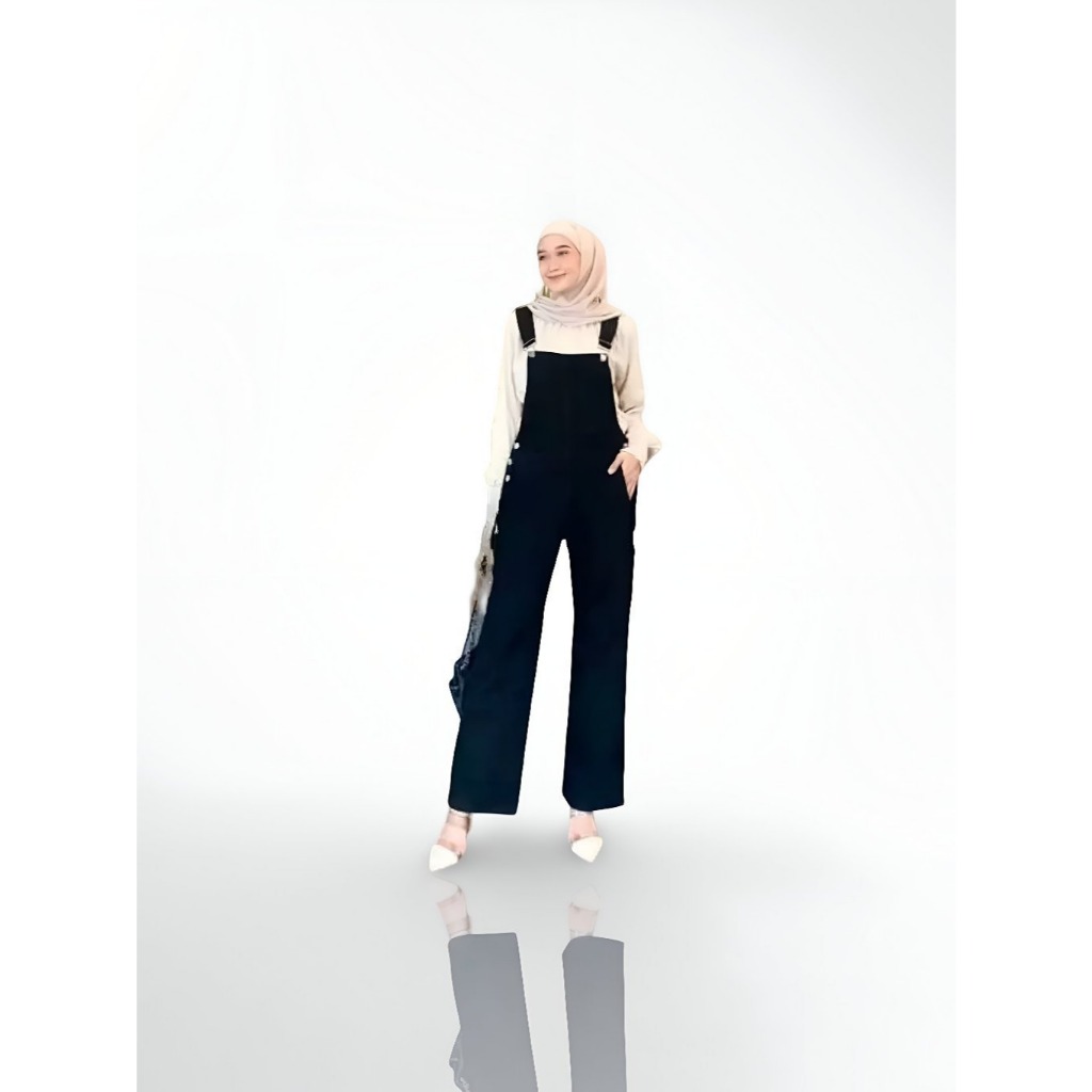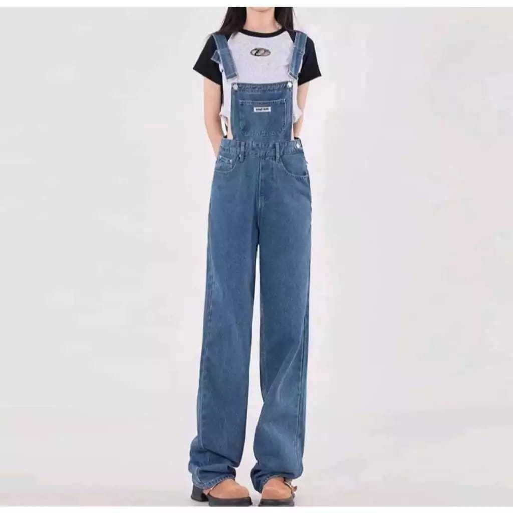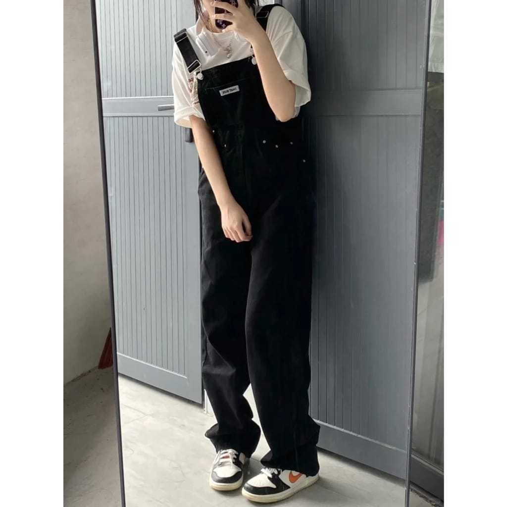 Overall Jumpsuit Plus Size Celana Lebar Kaki longgar Gaya Korea Style Denim Dan Hitam